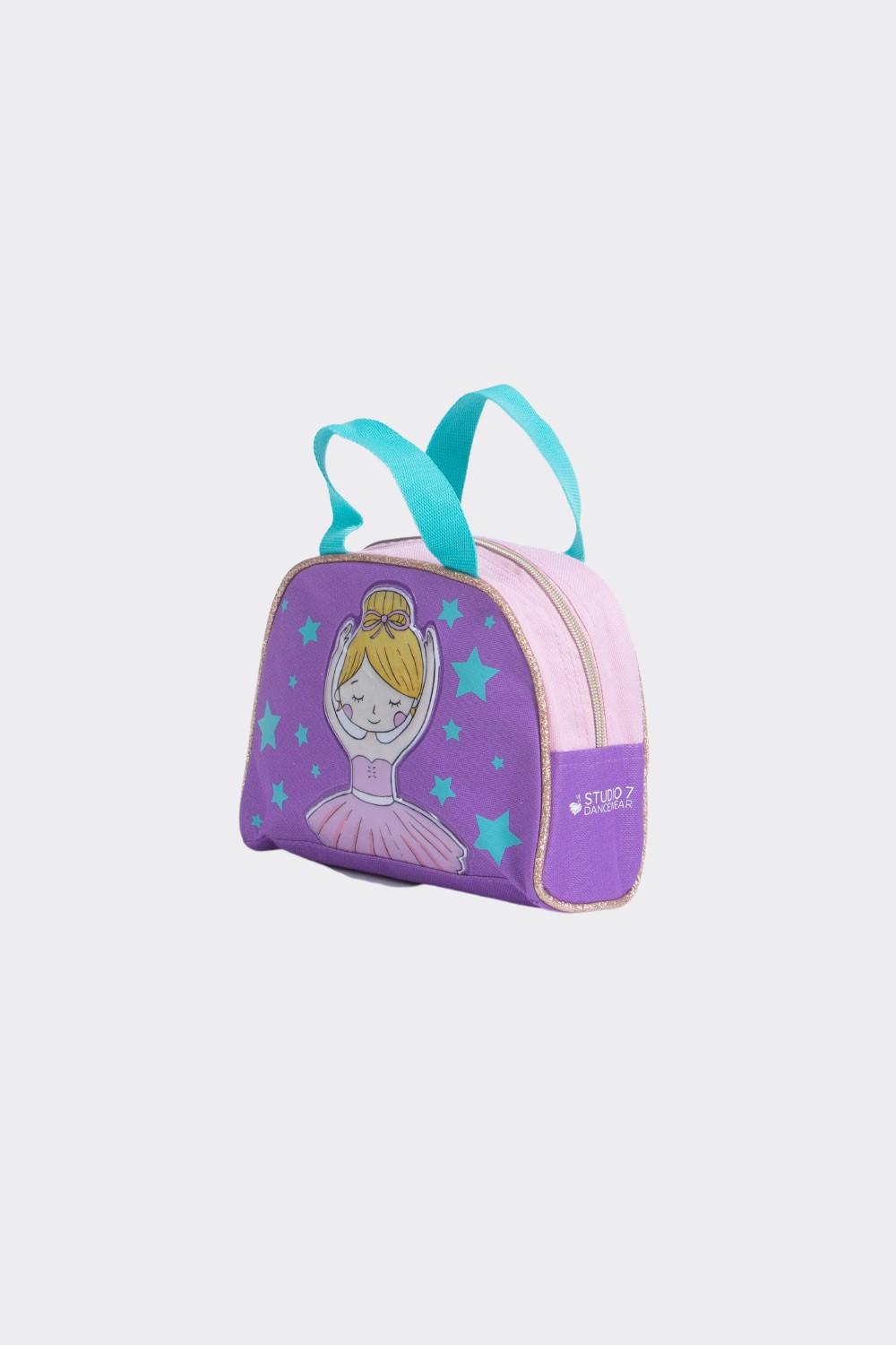 The Ballerina Star Carry Bag is a single compartment dance bag with gold trim, perfect for carrying shoes to beginner dancers’ classes.